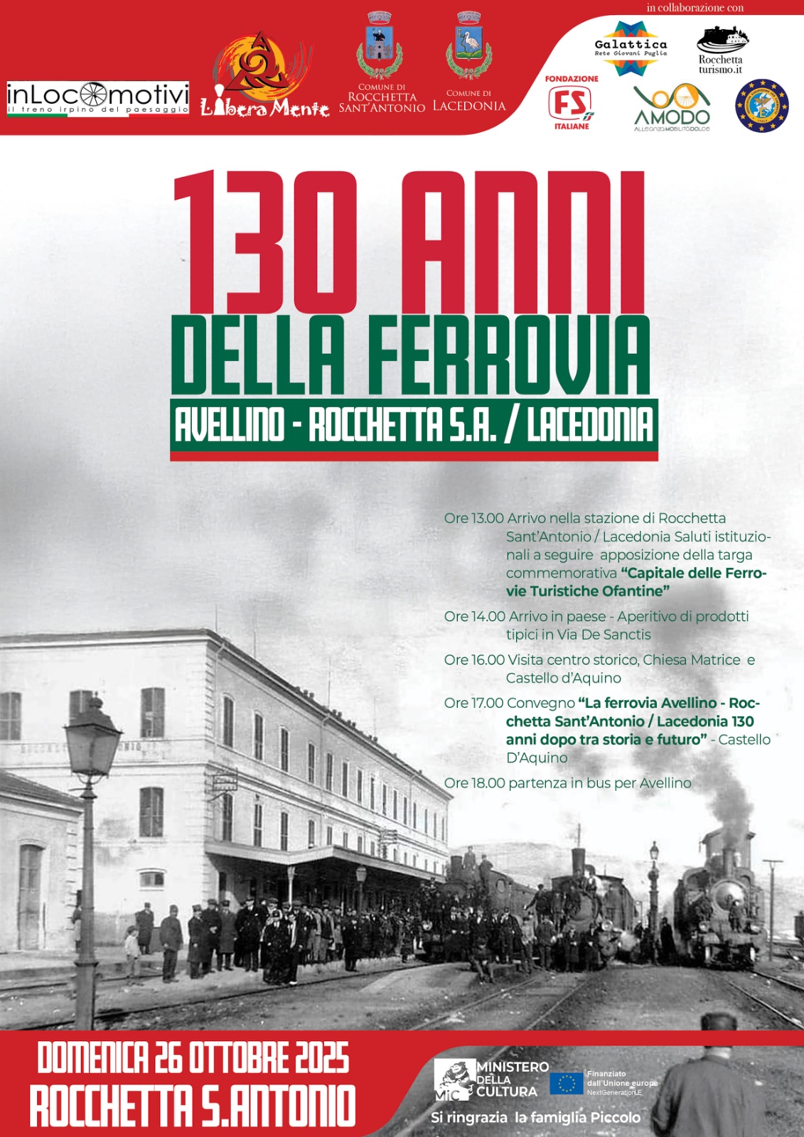 Manifestazione per i 130 Anni della Ferrovia Avellino - Rocchetta S.A./Lacedonia - 26 ottobre 2025 - programma