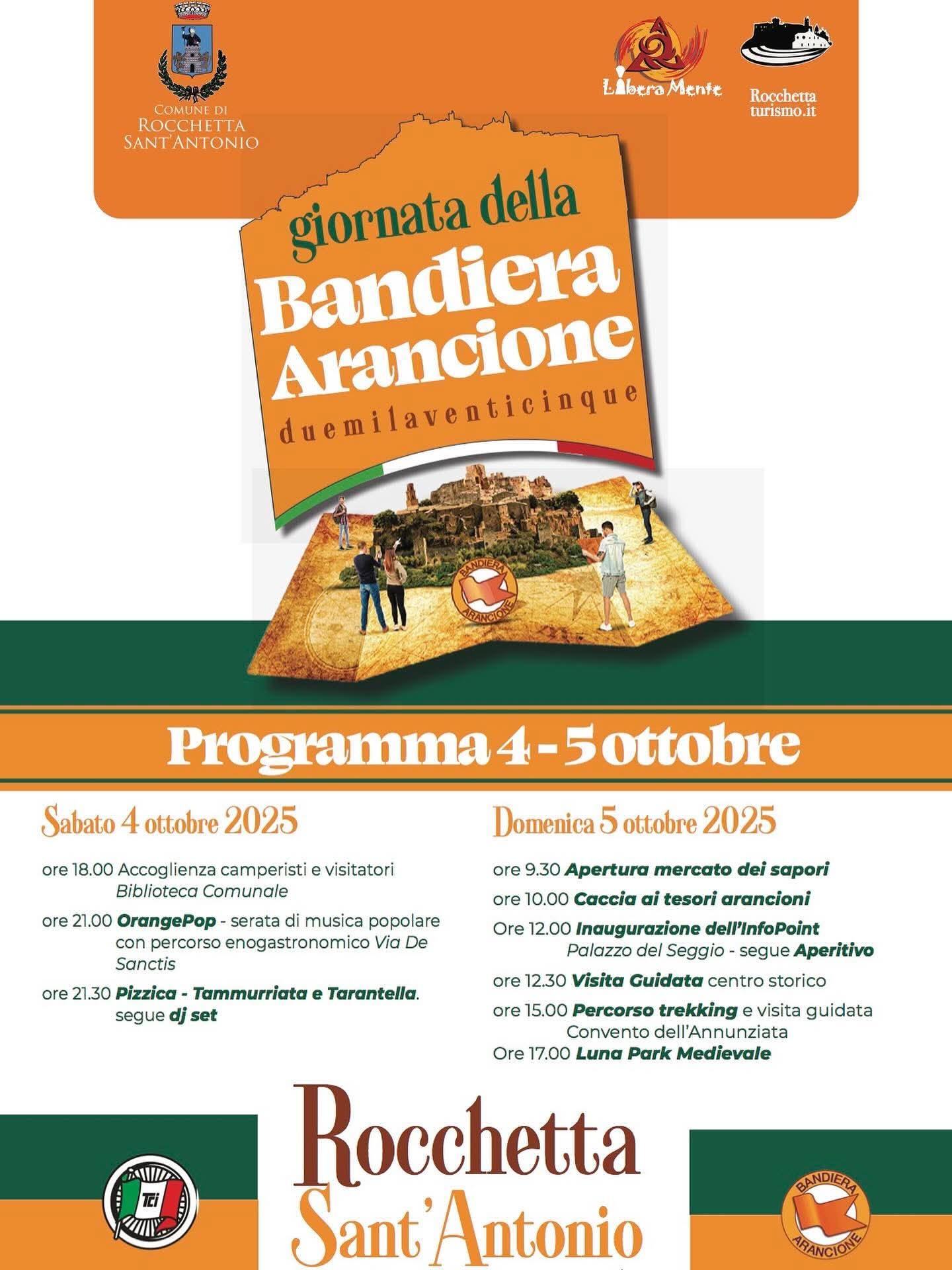 Giornata della Bandiera Arancione sabato 4 e domenica 5 ottobre 2025 Caccia ai Tesori Arancioni - programma